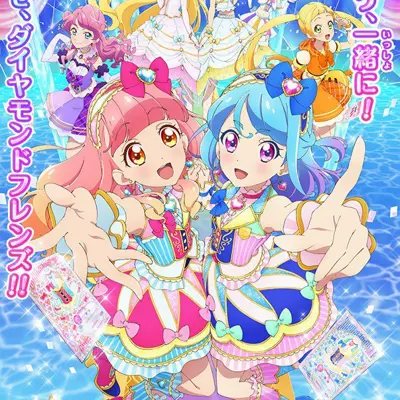 アイドル活動“アイカツ!”にはげむアイドルたちの 努力と友情の成長物語『アイカツフレンズ!』 スターハーモニー学園の普通科に通う「友希あいね」は、 友達を作るのが大得意な女の子。 学園のトップアイドル「湊みお」と友達になって、 一緒に“アイカツ!”のステージに出ることに!? 待っていたのは「蝶乃舞花」や「日向エマ」など、 個性豊かなアイドルたちとの出会いや 芸能界のお仕事、学園生活と大忙しの毎日! 2人組の『フレンズ』を組んで、目指すのは トップアイドル、キラキラ輝く『ダイヤモンドフレンズ』! 「神城カレン」「明日香ミライ」の2人がまとうドレスの輝きは、 まさにダイヤモンド級! 集めた数だけドラマがあるっ! 『アイカツ!カード』でドレスアップ! ファンも友達、カードも友達! 友達いっぱい、夢いっぱい!